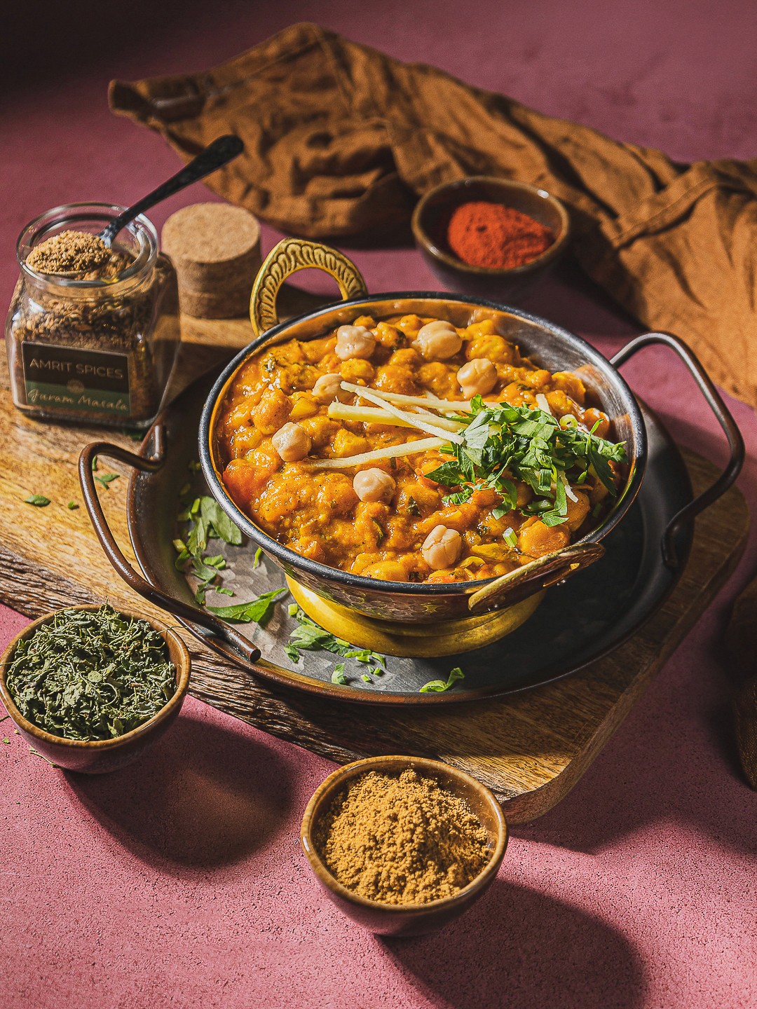 Authentische Bildwelten für klassische indische Küche — intensive Gewürztöne, traditionelle Gerichte und vielschichtige Texturen, klar und ausgewogen inszeniert.